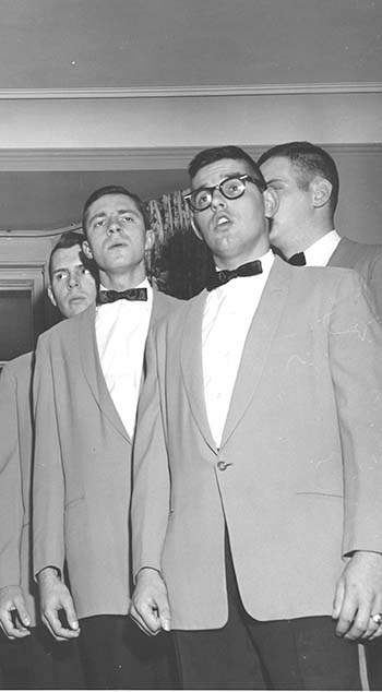 Current Northfielder Dixon Bond is shown here (foreground center) in 1959, singing with the Carleton Knights group he founded in 1955. Photo credit: Carleton Archives
